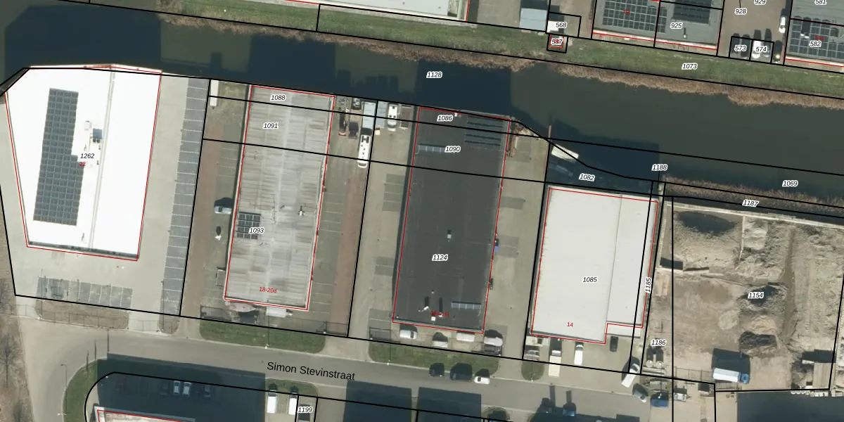 Het perceel waarop Simon Stevinstraat 16-g staat heeft een oppervlakte van 1765 m². Dit is een zeer groot perceel. De perceeloppervlakte wordt geregistreerd door het Kadaster. Gedetailleerde informatie over de maten van dit perceel kunt u vinden in het rapport Kadastrale kaart met maatvoering van Simon Stevinstraat 16-g.