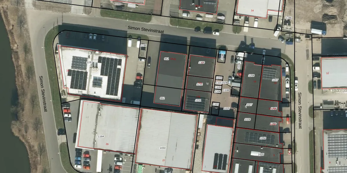 Het perceel waarop Simon Stevinstraat 21 staat heeft een oppervlakte van 612 m². Dit is een groot perceel. De perceeloppervlakte wordt geregistreerd door het Kadaster. Gedetailleerde informatie over de maten van dit perceel kunt u vinden in het rapport Kadastrale kaart met maatvoering van Simon Stevinstraat 21.