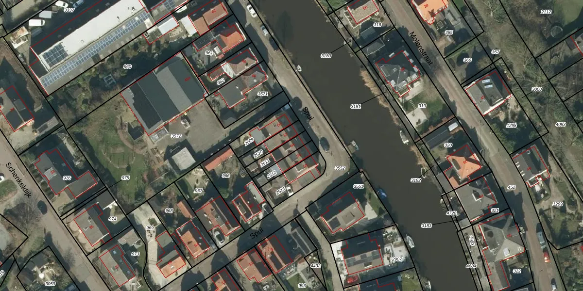 Spui 54 is gelegen op kadastraal perceel SEN00N2511. Deze kadastrale aanduiding is uniek en wordt gebruikt door het Kadaster om eigendomsrechten en andere zakelijke rechten vast te leggen. Het perceel maakt onderdeel uit van de kadastrale gemeente Strijen.