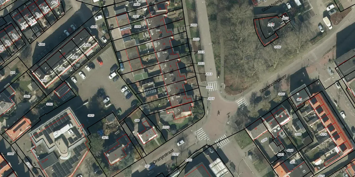 Gebruik de zoekbalk of klik op een perceel voor informatie over de adressen binnen dit perceel.
