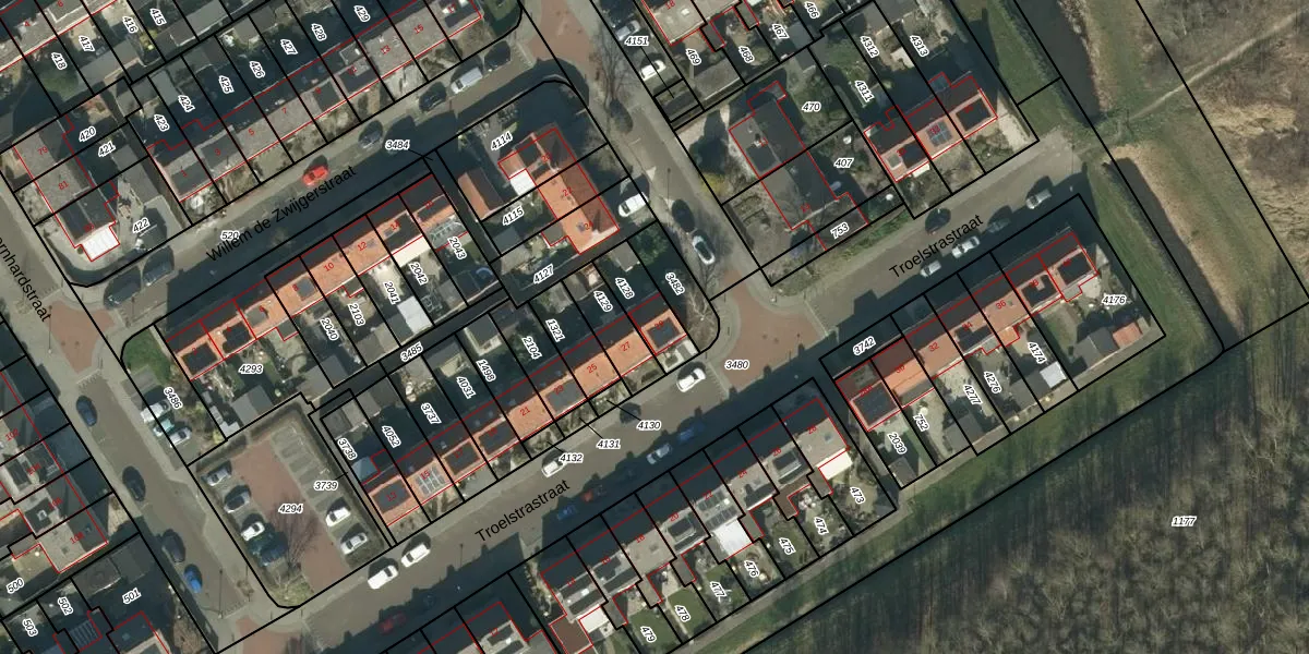 Troelstrastraat 29 is gelegen op kadastraal perceel SEN00N4128. Deze kadastrale aanduiding is uniek en wordt gebruikt door het Kadaster om eigendomsrechten en andere zakelijke rechten vast te leggen. Het perceel maakt onderdeel uit van de kadastrale gemeente Strijen.