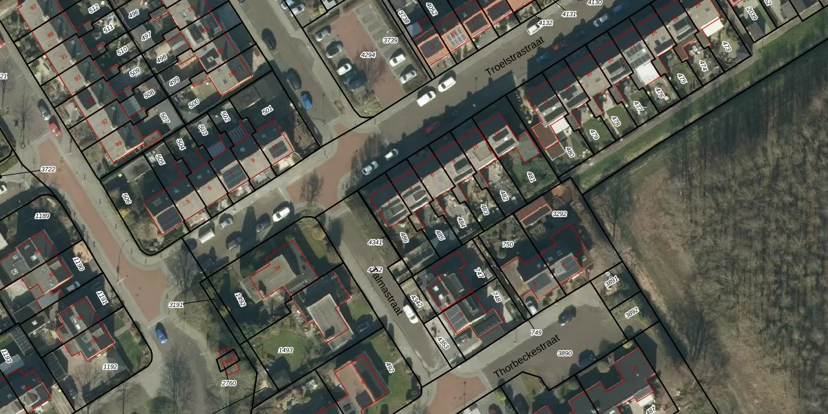 Troelstrastraat 4 is gelegen op kadastraal perceel SEN00N485. Deze kadastrale aanduiding is uniek en wordt gebruikt door het Kadaster om eigendomsrechten en andere zakelijke rechten vast te leggen. Het perceel maakt onderdeel uit van de kadastrale gemeente Strijen.