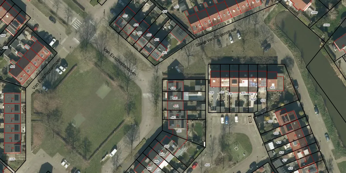 Gebruik de zoekbalk of klik op een perceel voor informatie over de adressen binnen dit perceel.