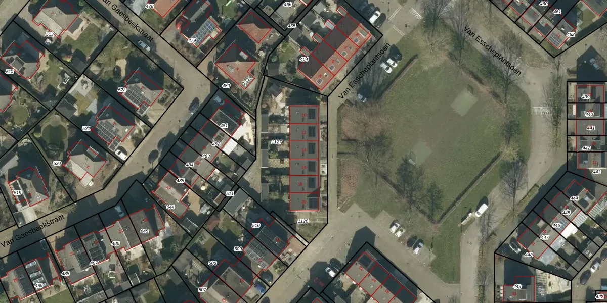 Van Esscheplantsoen 14 is gelegen op kadastraal perceel SEN00V1127. Deze kadastrale aanduiding is uniek en wordt gebruikt door het Kadaster om eigendomsrechten en andere zakelijke rechten vast te leggen. Het perceel maakt onderdeel uit van de kadastrale gemeente Strijen.
