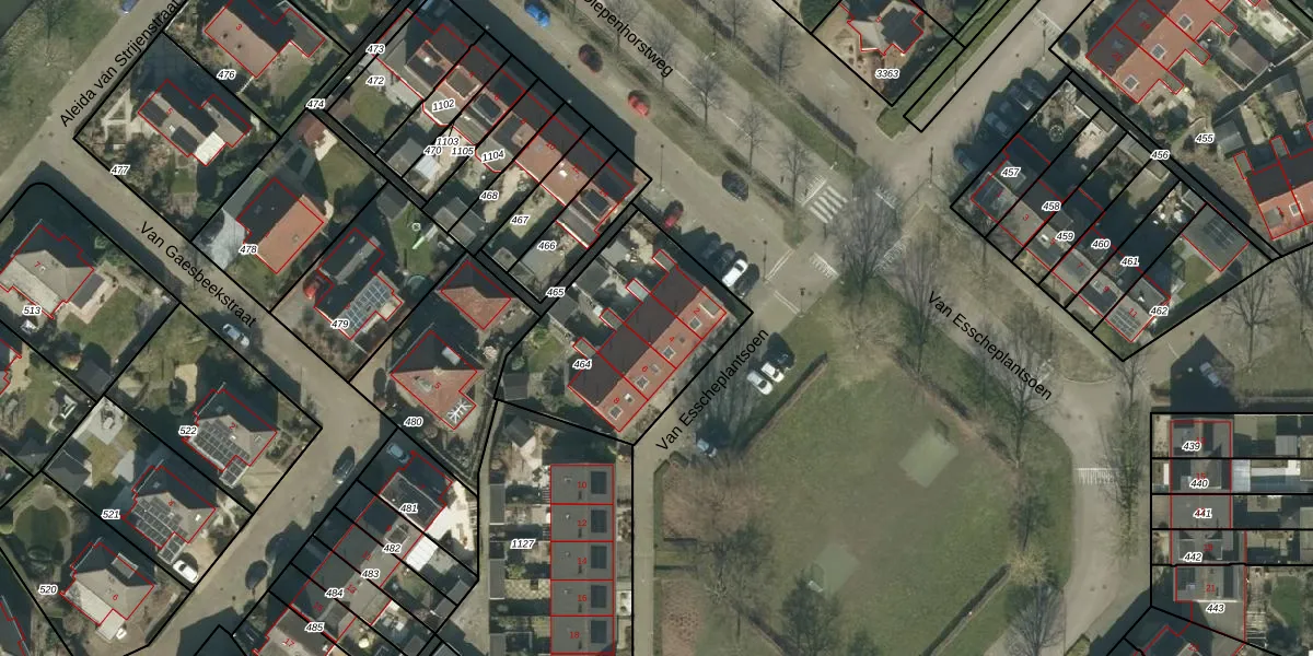 Van Esscheplantsoen 4 is gelegen op kadastraal perceel SEN00V464. Deze kadastrale aanduiding is uniek en wordt gebruikt door het Kadaster om eigendomsrechten en andere zakelijke rechten vast te leggen. Het perceel maakt onderdeel uit van de kadastrale gemeente Strijen.