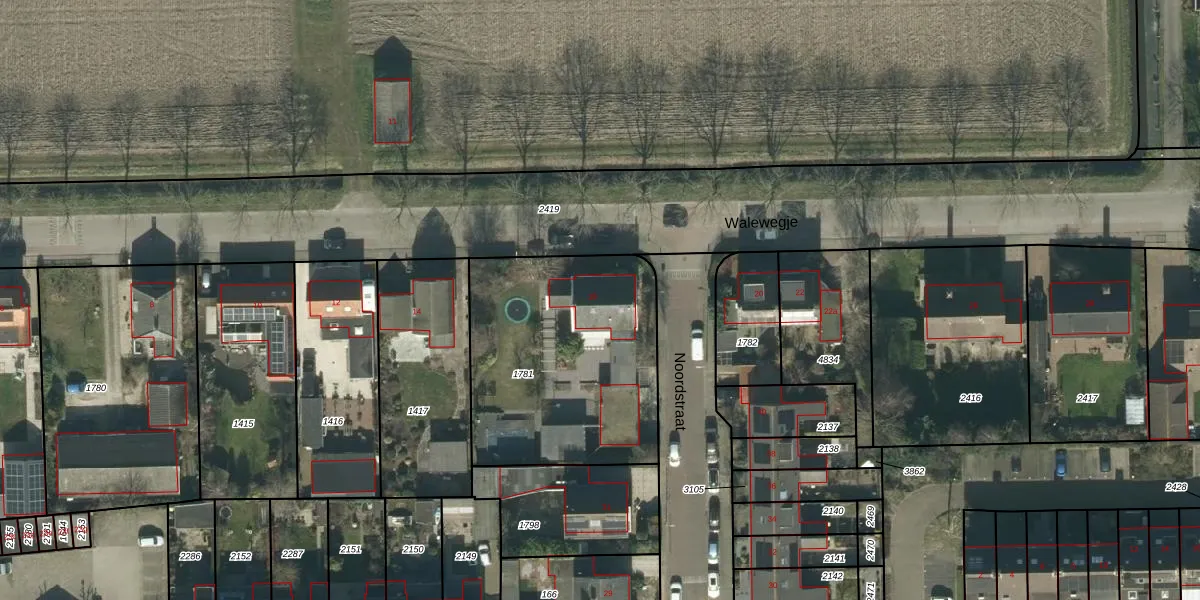 Het perceel waarop Walewegje 18 staat heeft een oppervlakte van 1080 m². Dit is een zeer groot perceel. De perceeloppervlakte wordt geregistreerd door het Kadaster. Gedetailleerde informatie over de maten van dit perceel kunt u vinden in het rapport Kadastrale kaart met maatvoering van Walewegje 18.