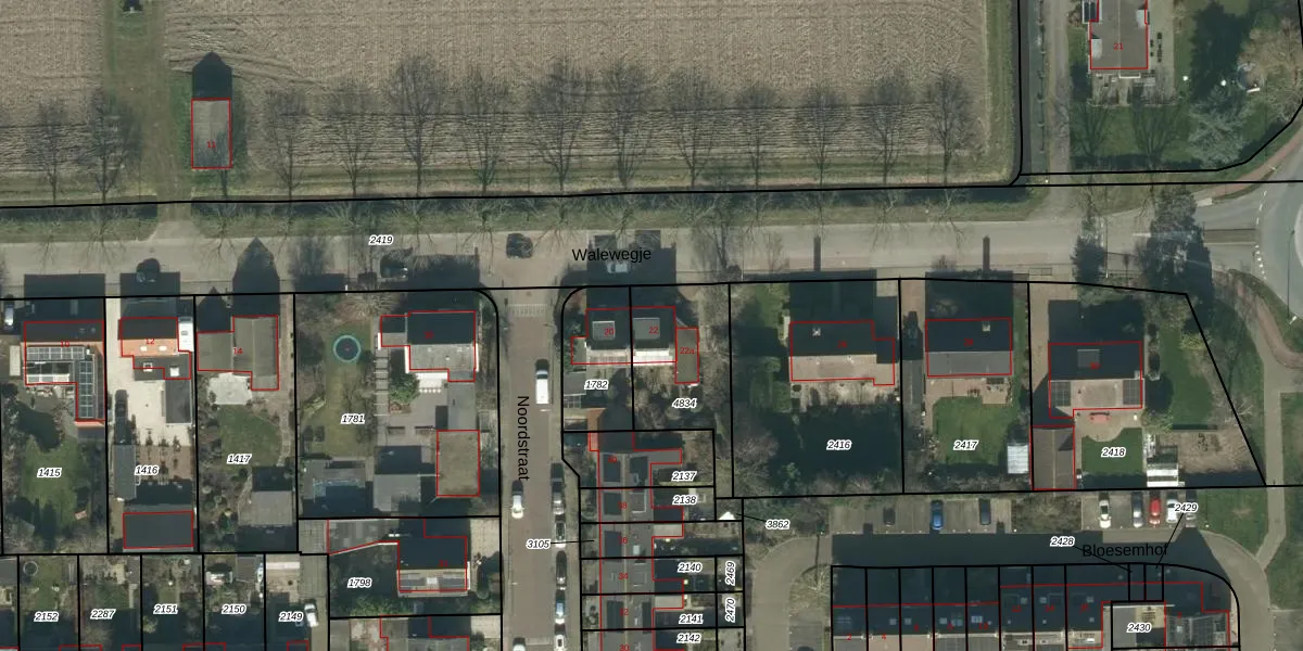 Het perceel waarop Walewegje 22 staat heeft een oppervlakte van 366 m². Dit is een groot perceel. De perceeloppervlakte wordt geregistreerd door het Kadaster. Gedetailleerde informatie over de maten van dit perceel kunt u vinden in het rapport Kadastrale kaart met maatvoering van Walewegje 22.