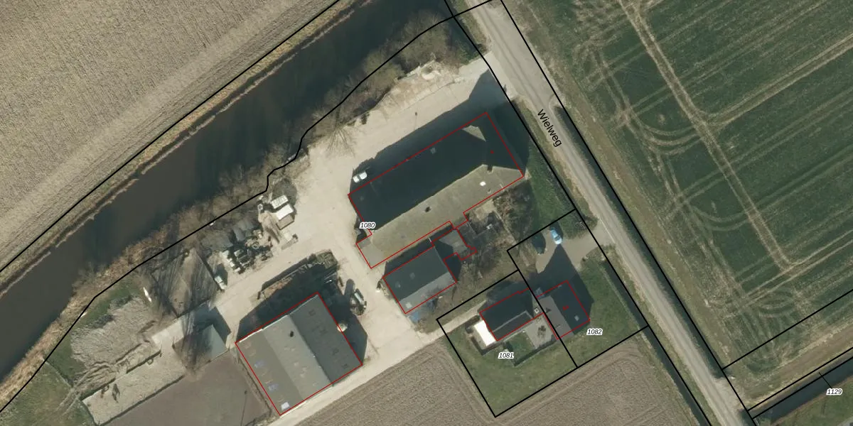 Het perceel waarop Wielweg 4 staat heeft een oppervlakte van 6,2 ha. Dit is een zeer groot perceel. De perceeloppervlakte wordt geregistreerd door het Kadaster. Gedetailleerde informatie over de maten van dit perceel kunt u vinden in het rapport Kadastrale kaart met maatvoering van Wielweg 4.