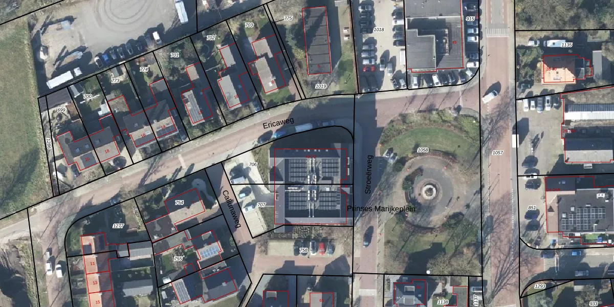 Het perceel waarop Ericaweg 46 staat heeft een oppervlakte van 628 m². Dit is een groot perceel. De perceeloppervlakte wordt geregistreerd door het Kadaster. Gedetailleerde informatie over de maten van dit perceel kunt u vinden in het rapport Kadastrale kaart met maatvoering van Ericaweg 46.