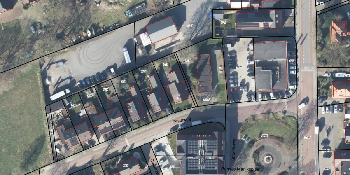 Het perceel waarop Ericaweg 8 staat heeft een oppervlakte van 426 m². Dit is een groot perceel. De perceeloppervlakte wordt geregistreerd door het Kadaster. Gedetailleerde informatie over de maten van dit perceel kunt u vinden in het rapport Kadastrale kaart met maatvoering van Ericaweg 8.