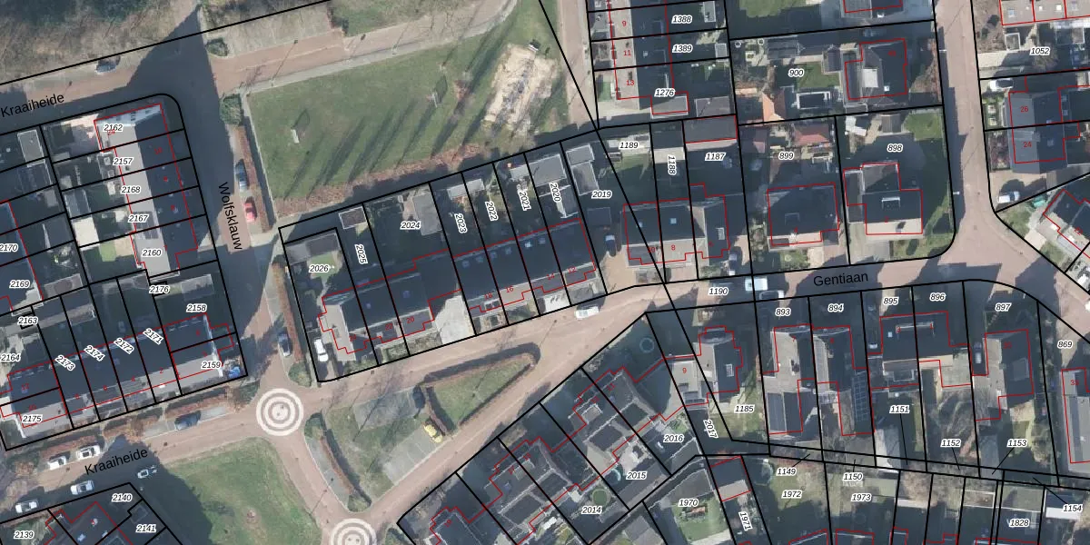 Gebruik de zoekbalk of klik op een perceel voor informatie over de adressen binnen dit perceel.