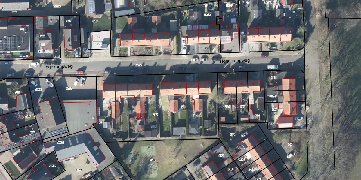 Het perceel waarop Hogekampweg 12 staat heeft een oppervlakte van 2450 m². Dit is een zeer groot perceel. De perceeloppervlakte wordt geregistreerd door het Kadaster. Gedetailleerde informatie over de maten van dit perceel kunt u vinden in het rapport Kadastrale kaart met maatvoering van Hogekampweg 12.