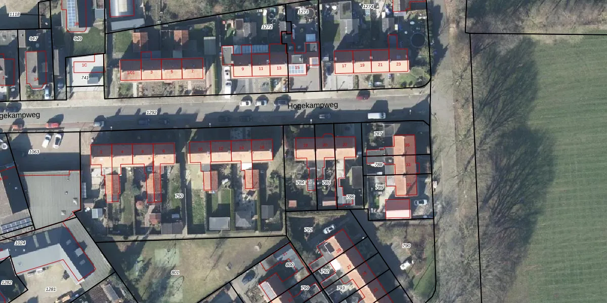 Gebruik de zoekbalk of klik op een perceel voor informatie over de adressen binnen dit perceel.