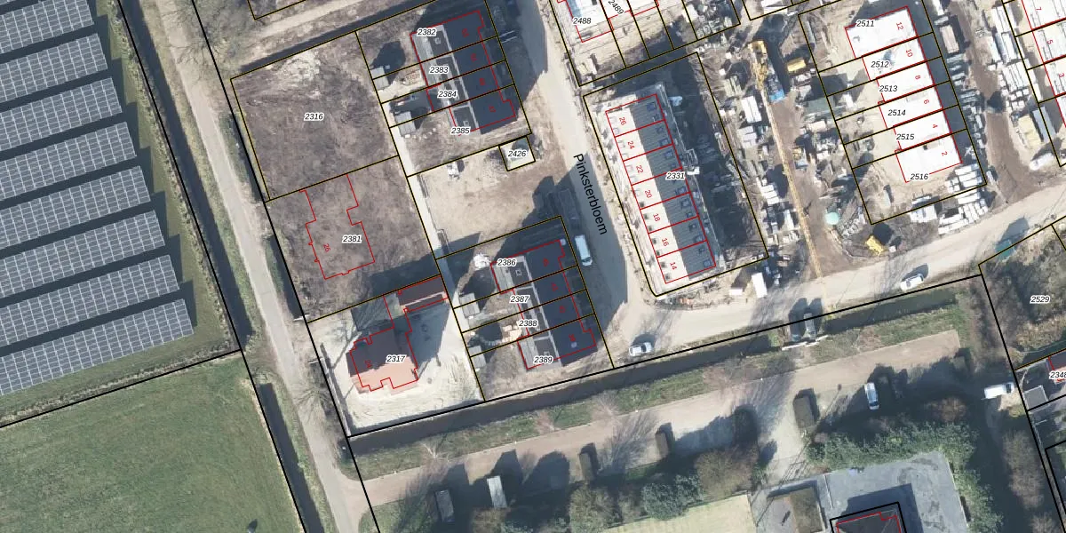 Gebruik de zoekbalk of klik op een perceel voor informatie over de adressen binnen dit perceel.