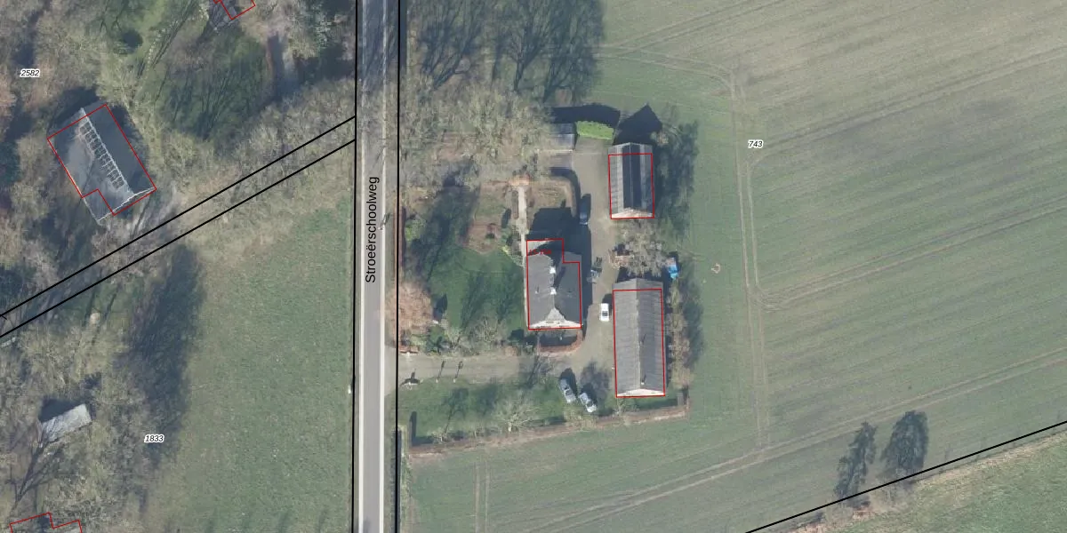 Het perceel waarop Stroeërschoolweg 15 staat heeft een oppervlakte van 2,0 ha. Dit is een zeer groot perceel. De perceeloppervlakte wordt geregistreerd door het Kadaster. Gedetailleerde informatie over de maten van dit perceel kunt u vinden in het rapport Kadastrale kaart met maatvoering van Stroeërschoolweg 15.