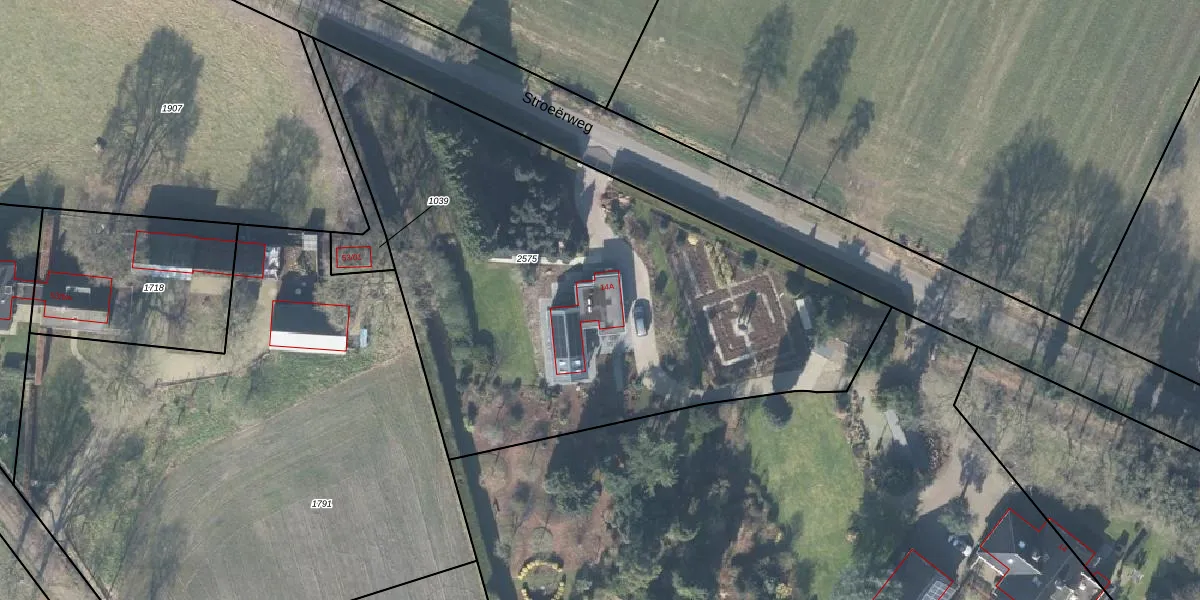 Het perceel waarop Stroeërweg 14-A staat heeft een oppervlakte van 3115 m². Dit is een zeer groot perceel. De perceeloppervlakte wordt geregistreerd door het Kadaster. Gedetailleerde informatie over de maten van dit perceel kunt u vinden in het rapport Kadastrale kaart met maatvoering van Stroeërweg 14-A.