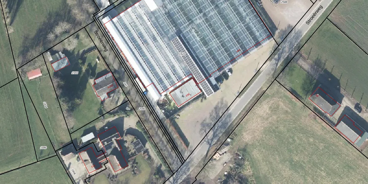 Het perceel waarop Stroeërweg 43-B staat heeft een oppervlakte van 5785 m². Dit is een zeer groot perceel. De perceeloppervlakte wordt geregistreerd door het Kadaster. Gedetailleerde informatie over de maten van dit perceel kunt u vinden in het rapport Kadastrale kaart met maatvoering van Stroeërweg 43-B.