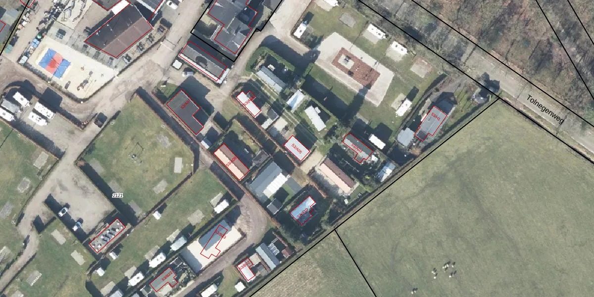 Het perceel waarop Tolnegenweg 53-A05 staat heeft een oppervlakte van 3,5 ha. Dit is een zeer groot perceel. De perceeloppervlakte wordt geregistreerd door het Kadaster. Gedetailleerde informatie over de maten van dit perceel kunt u vinden in het rapport Kadastrale kaart met maatvoering van Tolnegenweg 53-A05.