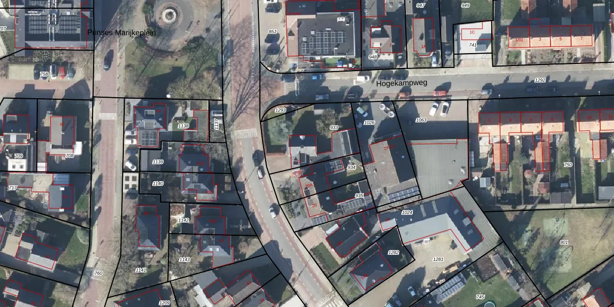 Gebruik de zoekbalk of klik op een perceel voor informatie over de adressen binnen dit perceel.