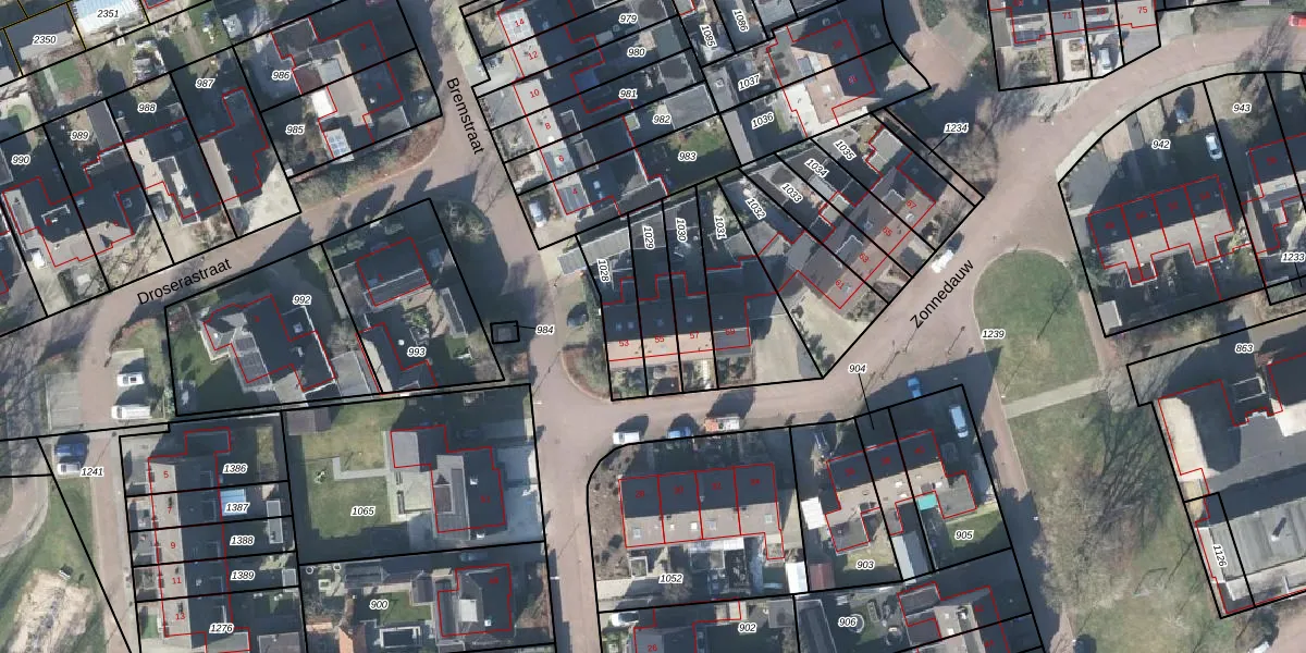 Gebruik de zoekbalk of klik op een perceel voor informatie over de adressen binnen dit perceel.