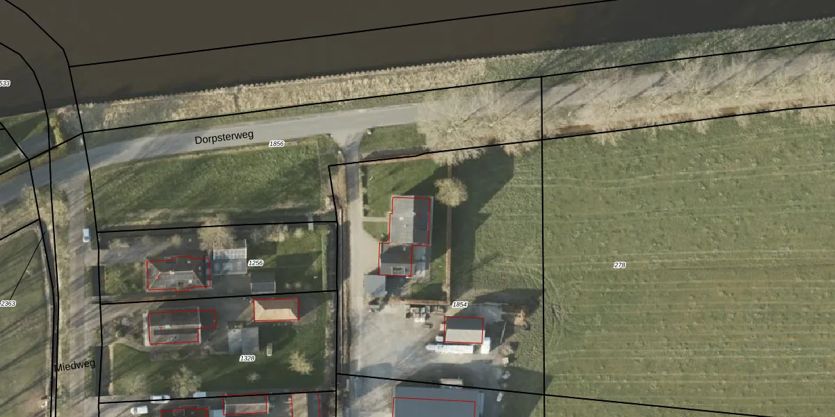 Het perceel waarop Dorpsterweg 9 staat heeft een oppervlakte van 2750 m². Dit is een zeer groot perceel. De perceeloppervlakte wordt geregistreerd door het Kadaster. Gedetailleerde informatie over de maten van dit perceel kunt u vinden in het rapport Kadastrale kaart met maatvoering van Dorpsterweg 9.