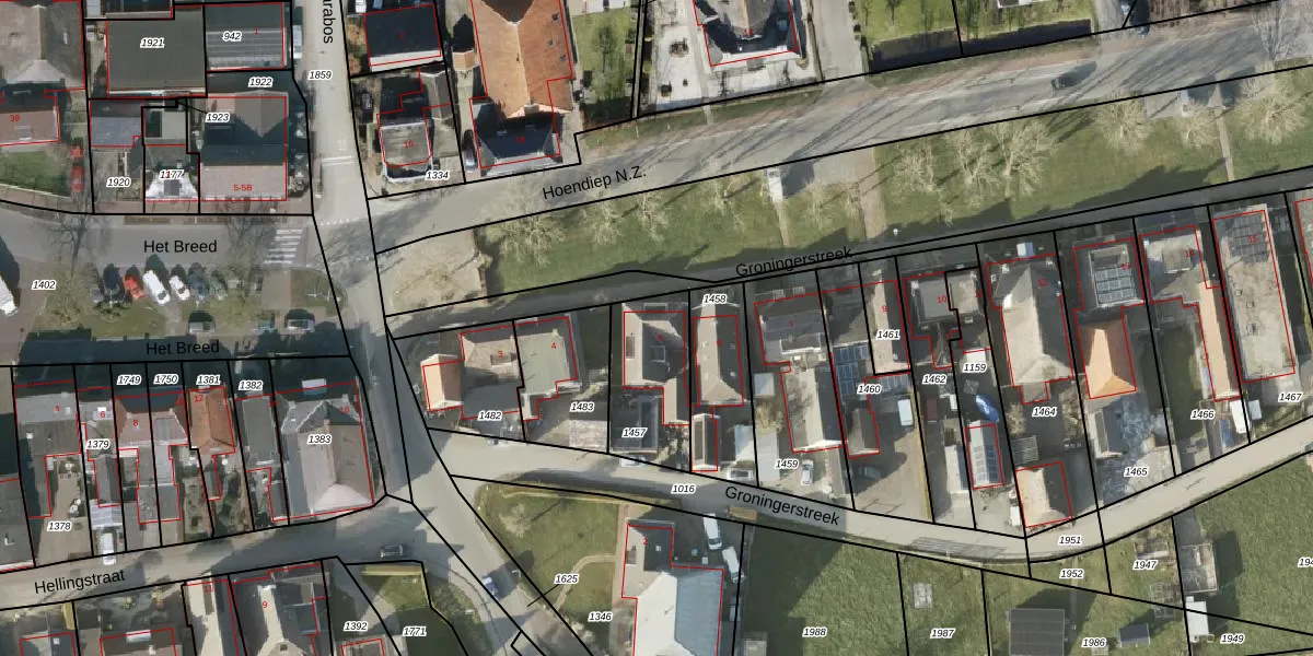 Gebruik de zoekbalk of klik op een perceel voor informatie over de adressen binnen dit perceel.