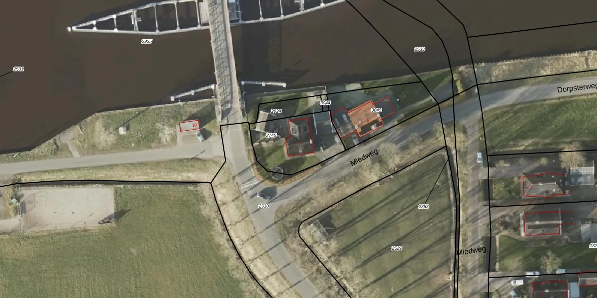 Miedweg 1 is gelegen op kadastraal perceel DGH00B2745. Deze kadastrale aanduiding is uniek en wordt gebruikt door het Kadaster om eigendomsrechten en andere zakelijke rechten vast te leggen. Het perceel maakt onderdeel uit van de kadastrale gemeente Drogeham.