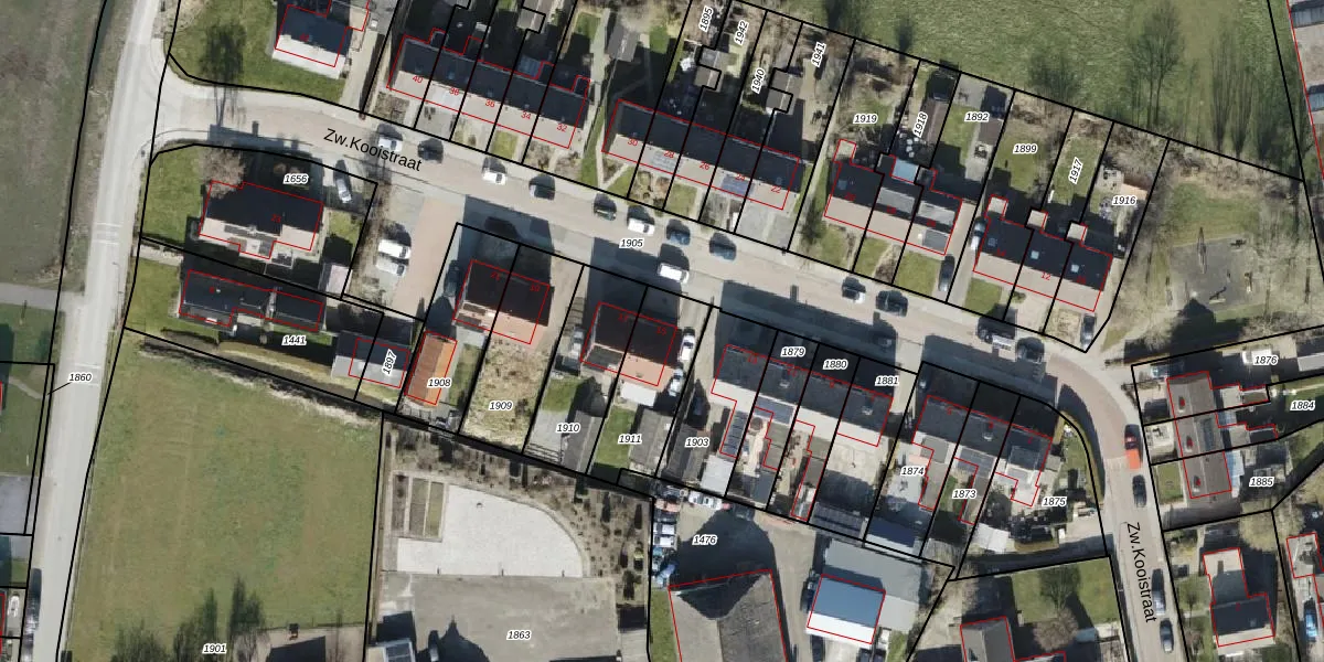 Het perceel waarop Zw.Kooistraat 15 staat heeft een oppervlakte van 286 m². Dit is een middelgroot perceel. De perceeloppervlakte wordt geregistreerd door het Kadaster. Gedetailleerde informatie over de maten van dit perceel kunt u vinden in het rapport Kadastrale kaart met maatvoering van Zw.Kooistraat 15.