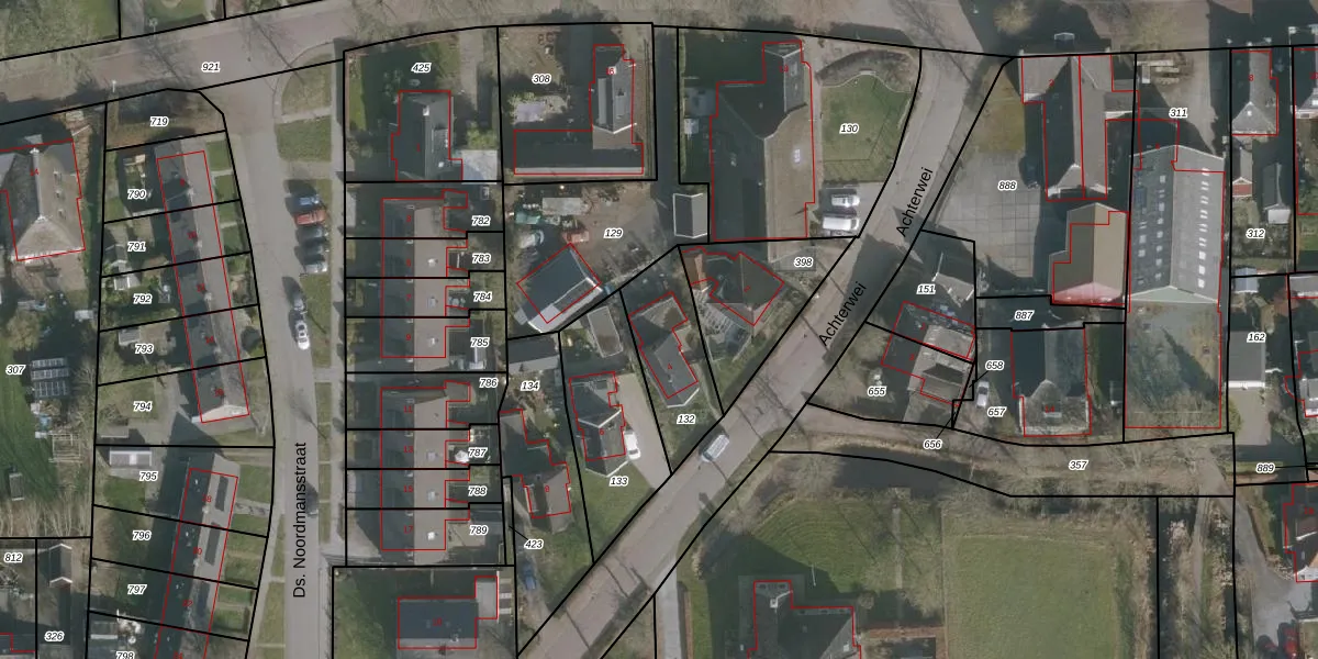 Het perceel waarop Achterwei 4 staat heeft een oppervlakte van 297 m². Dit is een middelgroot perceel. De perceeloppervlakte wordt geregistreerd door het Kadaster. Gedetailleerde informatie over de maten van dit perceel kunt u vinden in het rapport Kadastrale kaart met maatvoering van Achterwei 4.