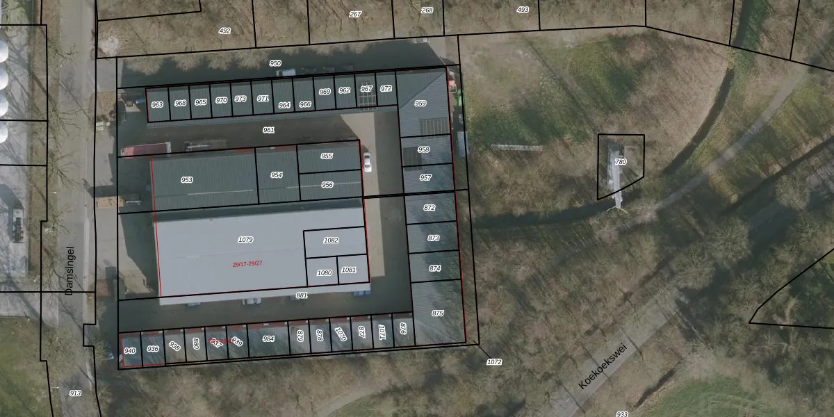 Het perceel waarop Damsingel 29-16 staat heeft een oppervlakte van 87 m². Dit is een klein perceel. De perceeloppervlakte wordt geregistreerd door het Kadaster. Gedetailleerde informatie over de maten van dit perceel kunt u vinden in het rapport Kadastrale kaart met maatvoering van Damsingel 29-16.