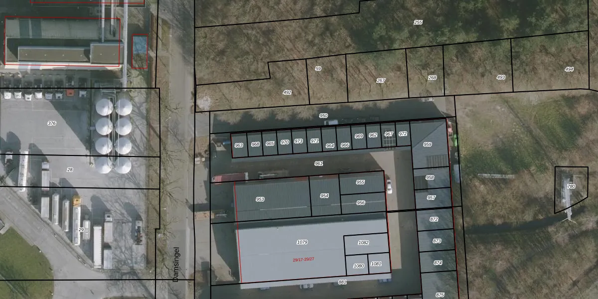 Het perceel waarop Damsingel 29-38 staat heeft een oppervlakte van 41 m². Dit is een klein perceel. De perceeloppervlakte wordt geregistreerd door het Kadaster. Gedetailleerde informatie over de maten van dit perceel kunt u vinden in het rapport Kadastrale kaart met maatvoering van Damsingel 29-38.
