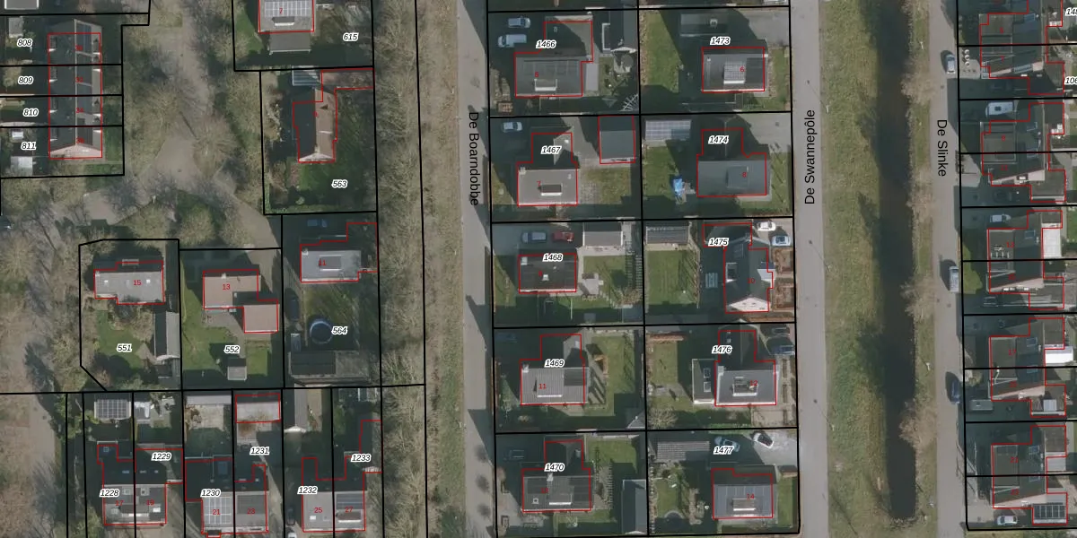 Het perceel waarop De Boarndobbe 9 staat heeft een oppervlakte van 550 m². Dit is een groot perceel. De perceeloppervlakte wordt geregistreerd door het Kadaster. Gedetailleerde informatie over de maten van dit perceel kunt u vinden in het rapport Kadastrale kaart met maatvoering van De Boarndobbe 9.