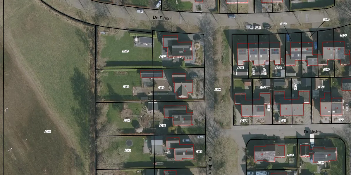 Het perceel waarop De Jister 4 staat heeft een oppervlakte van 560 m². Dit is een groot perceel. De perceeloppervlakte wordt geregistreerd door het Kadaster. Gedetailleerde informatie over de maten van dit perceel kunt u vinden in het rapport Kadastrale kaart met maatvoering van De Jister 4.