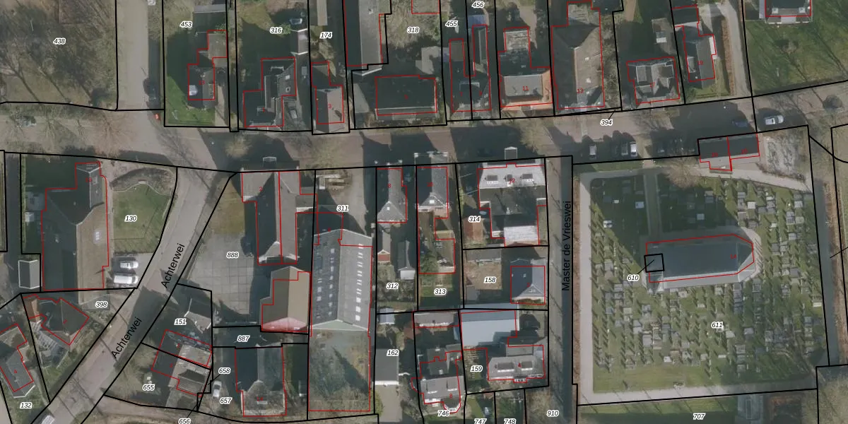 Gebruik de zoekbalk of klik op een perceel voor informatie over de adressen binnen dit perceel.
