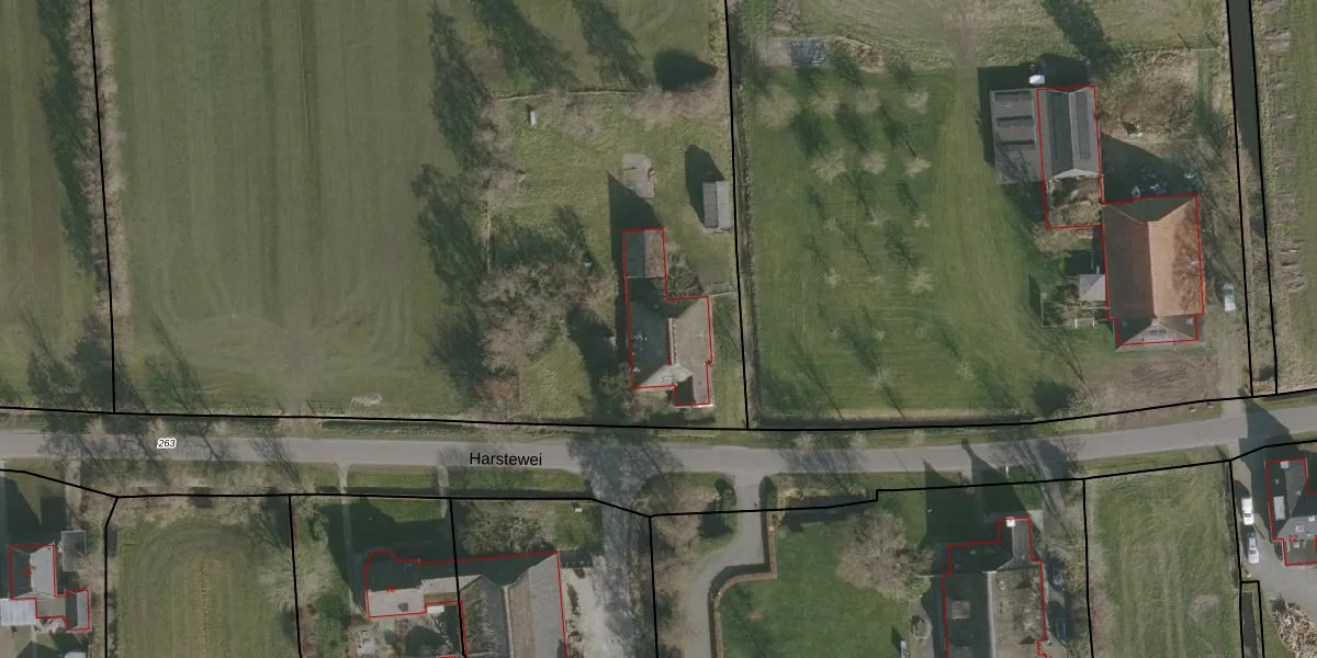 Het perceel waarop Harstewei 1 staat heeft een oppervlakte van 2,2 ha. Dit is een zeer groot perceel. De perceeloppervlakte wordt geregistreerd door het Kadaster. Gedetailleerde informatie over de maten van dit perceel kunt u vinden in het rapport Kadastrale kaart met maatvoering van Harstewei 1.
