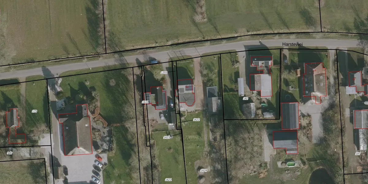 Het perceel waarop Harstewei 10 staat heeft een oppervlakte van 1965 m². Dit is een zeer groot perceel. De perceeloppervlakte wordt geregistreerd door het Kadaster. Gedetailleerde informatie over de maten van dit perceel kunt u vinden in het rapport Kadastrale kaart met maatvoering van Harstewei 10.