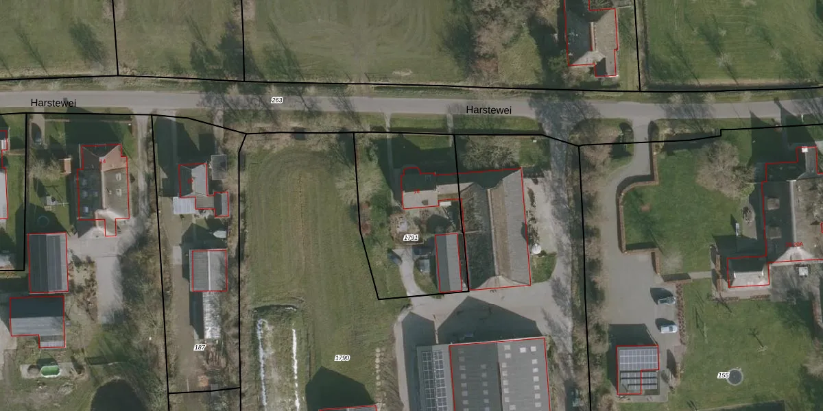 Het perceel waarop Harstewei 18 staat heeft een oppervlakte van 960 m². Dit is een groot perceel. De perceeloppervlakte wordt geregistreerd door het Kadaster. Gedetailleerde informatie over de maten van dit perceel kunt u vinden in het rapport Kadastrale kaart met maatvoering van Harstewei 18.