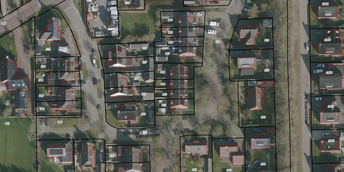 It Hoarnleger 32 is gelegen op kadastraal perceel OTM00I809. Deze kadastrale aanduiding is uniek en wordt gebruikt door het Kadaster om eigendomsrechten en andere zakelijke rechten vast te leggen. Het perceel maakt onderdeel uit van de kadastrale gemeente Oostermeer.