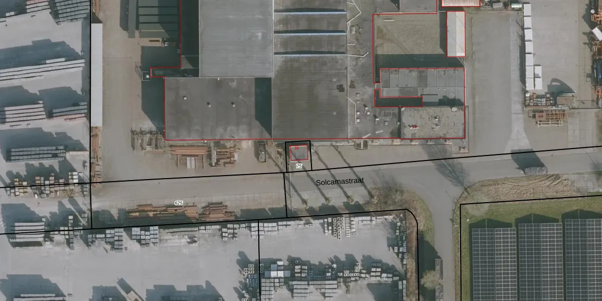 Het perceel waarop Solcamastraat 20 staat heeft een oppervlakte van 82 m². Dit is een klein perceel. De perceeloppervlakte wordt geregistreerd door het Kadaster. Gedetailleerde informatie over de maten van dit perceel kunt u vinden in het rapport Kadastrale kaart met maatvoering van Solcamastraat 20.