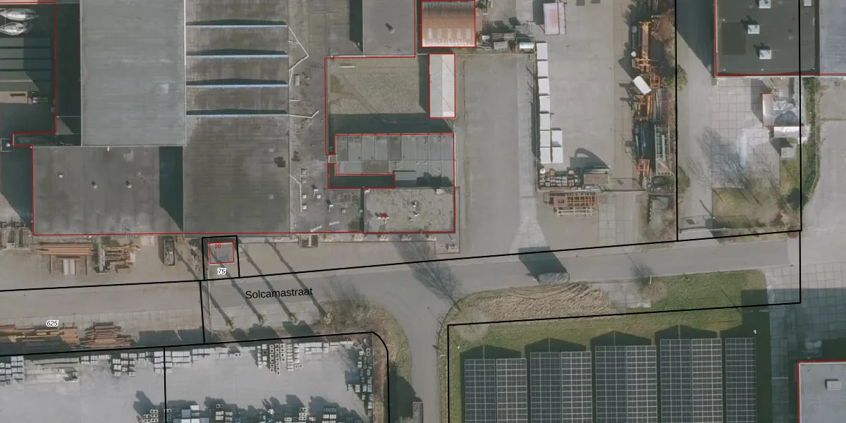 Het perceel waarop Solcamastraat 22 staat heeft een oppervlakte van 2,5 ha. Dit is een zeer groot perceel. De perceeloppervlakte wordt geregistreerd door het Kadaster. Gedetailleerde informatie over de maten van dit perceel kunt u vinden in het rapport Kadastrale kaart met maatvoering van Solcamastraat 22.
