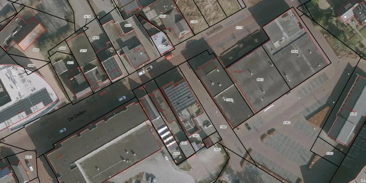 Het perceel waarop De Dellen 12-C staat heeft een oppervlakte van 681 m². Dit is een groot perceel. De perceeloppervlakte wordt geregistreerd door het Kadaster. Gedetailleerde informatie over de maten van dit perceel kunt u vinden in het rapport Kadastrale kaart met maatvoering van De Dellen 12-C.