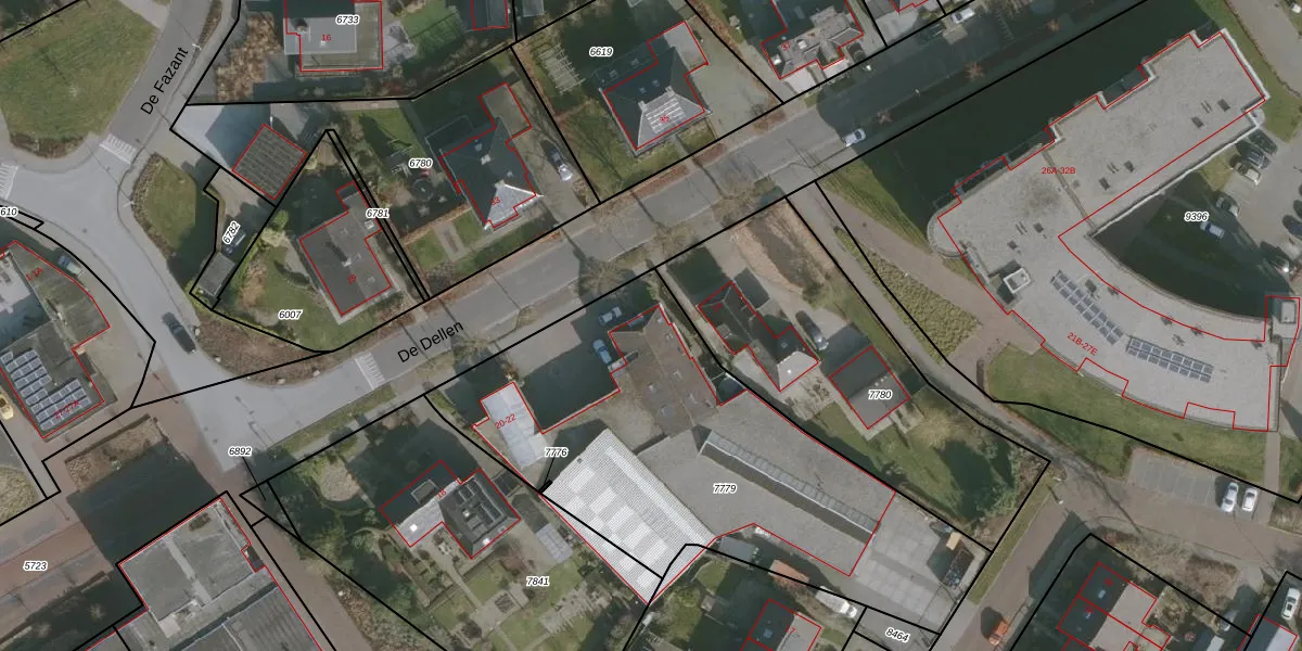 Het perceel waarop De Dellen 22 staat heeft een oppervlakte van 2027 m². Dit is een zeer groot perceel. De perceeloppervlakte wordt geregistreerd door het Kadaster. Gedetailleerde informatie over de maten van dit perceel kunt u vinden in het rapport Kadastrale kaart met maatvoering van De Dellen 22.