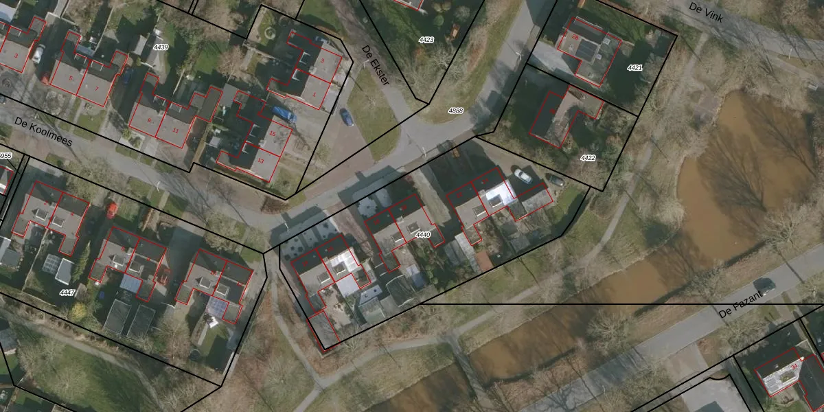 Het perceel waarop De Koolmees 20 staat heeft een oppervlakte van 1978 m². Dit is een zeer groot perceel. De perceeloppervlakte wordt geregistreerd door het Kadaster. Gedetailleerde informatie over de maten van dit perceel kunt u vinden in het rapport Kadastrale kaart met maatvoering van De Koolmees 20.