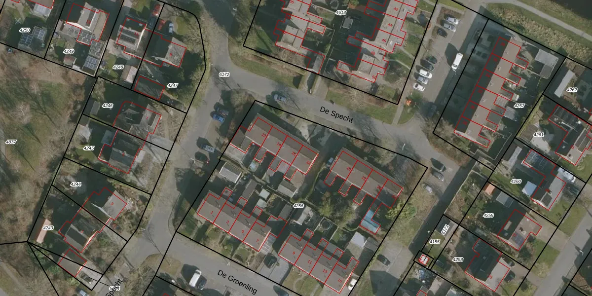 Het perceel waarop De Specht 16 staat heeft een oppervlakte van 3388 m². Dit is een zeer groot perceel. De perceeloppervlakte wordt geregistreerd door het Kadaster. Gedetailleerde informatie over de maten van dit perceel kunt u vinden in het rapport Kadastrale kaart met maatvoering van De Specht 16.