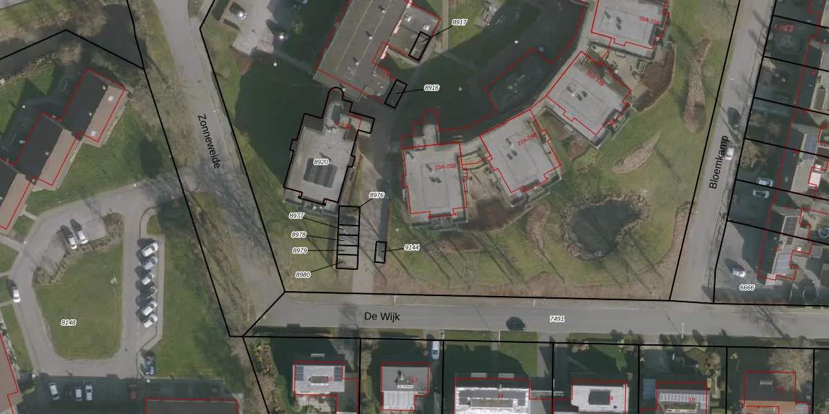 Zonneweide 25-K5 is gelegen op kadastraal perceel SHZ00B9145. Deze kadastrale aanduiding is uniek en wordt gebruikt door het Kadaster om eigendomsrechten en andere zakelijke rechten vast te leggen. Het perceel maakt onderdeel uit van de kadastrale gemeente Surhuizum.