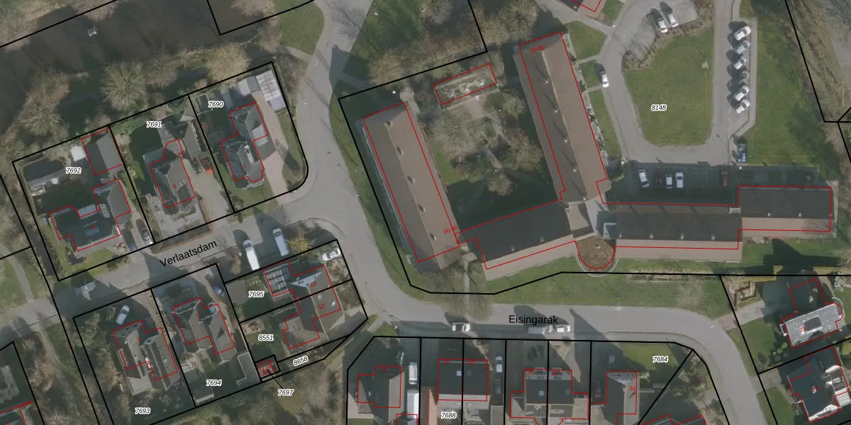 Het adres is gelegen op perceel 8148 in de sectie B en de kadastrale gemeente Surhuizum. De kadastrale aanduiding is aldus SHZ00-B-8148. De oppervlakte van het perceel is 9100 m². Dat is groter dan gemiddeld in Surhuizum, waar de gemiddelde perceeloppervlakte op 4085,88 m² ligt. Het grootste perceel in de kadastrale gemeente is 9,0 ha. Het kleinste perceel heeft een oppervlakte van 1 m². Op het perceel liggen in totaal 43 adressen. De huidige grenzen van het perceel zijn digitaal in de Basisregistratie Kadaster (BRK) geregistreerd op 10-01-2003.