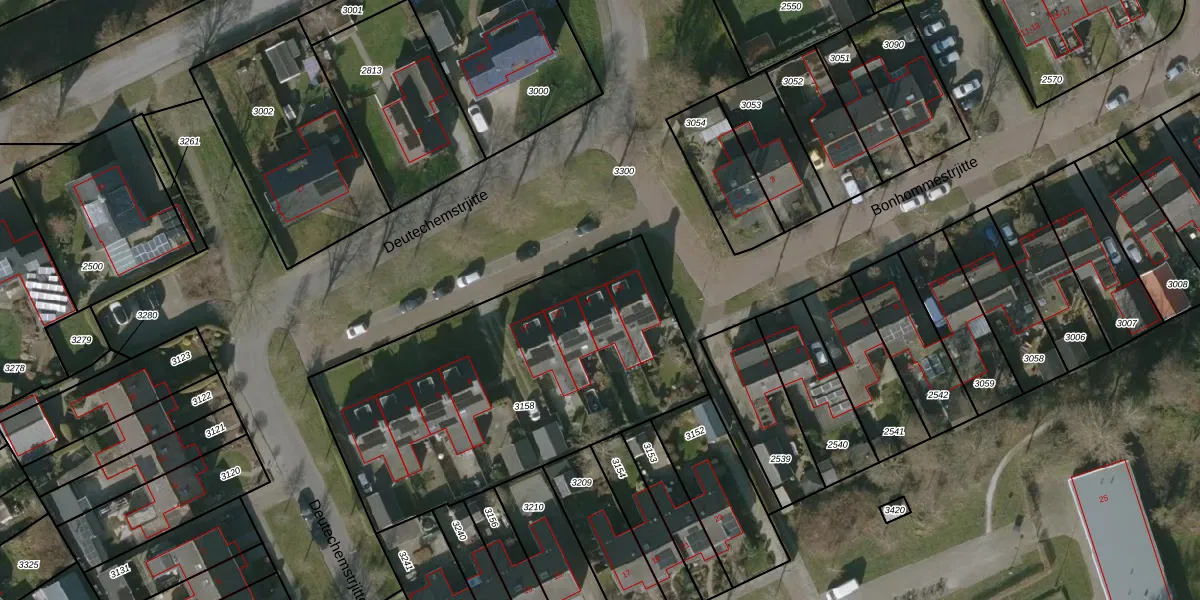 Deutechemstrjitte 14 is gelegen op kadastraal perceel SHZ00A3158. Deze kadastrale aanduiding is uniek en wordt gebruikt door het Kadaster om eigendomsrechten en andere zakelijke rechten vast te leggen. Het perceel maakt onderdeel uit van de kadastrale gemeente Surhuizum.