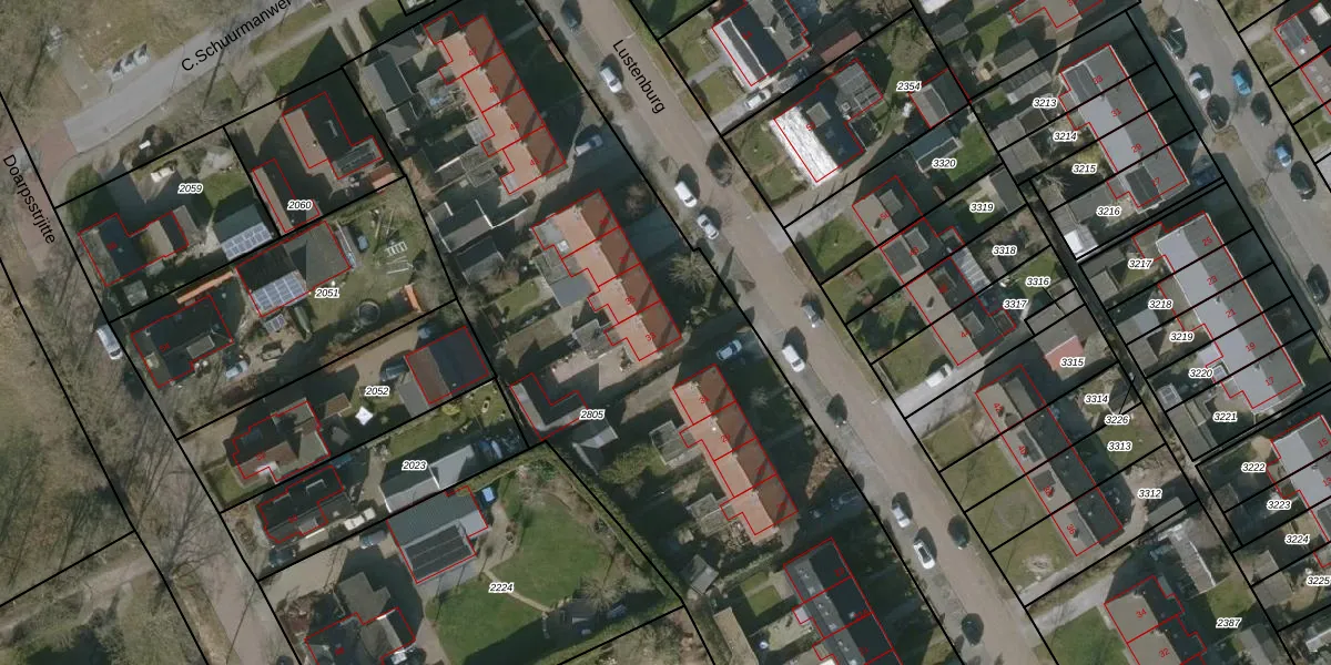 Het perceel waarop Lustenburg 33 staat heeft een oppervlakte van 4221 m². Dit is een zeer groot perceel. De perceeloppervlakte wordt geregistreerd door het Kadaster. Gedetailleerde informatie over de maten van dit perceel kunt u vinden in het rapport Kadastrale kaart met maatvoering van Lustenburg 33.