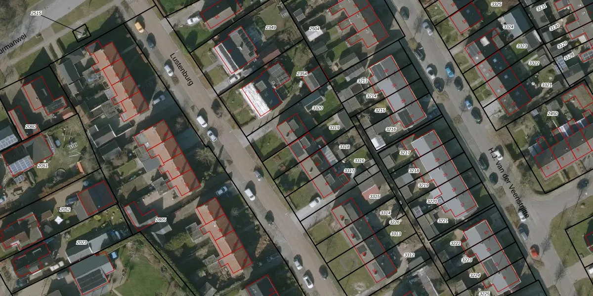 Het perceel waarop Lustenburg 48 staat heeft een oppervlakte van 235 m². Dit is een middelgroot perceel. De perceeloppervlakte wordt geregistreerd door het Kadaster. Gedetailleerde informatie over de maten van dit perceel kunt u vinden in het rapport Kadastrale kaart met maatvoering van Lustenburg 48.