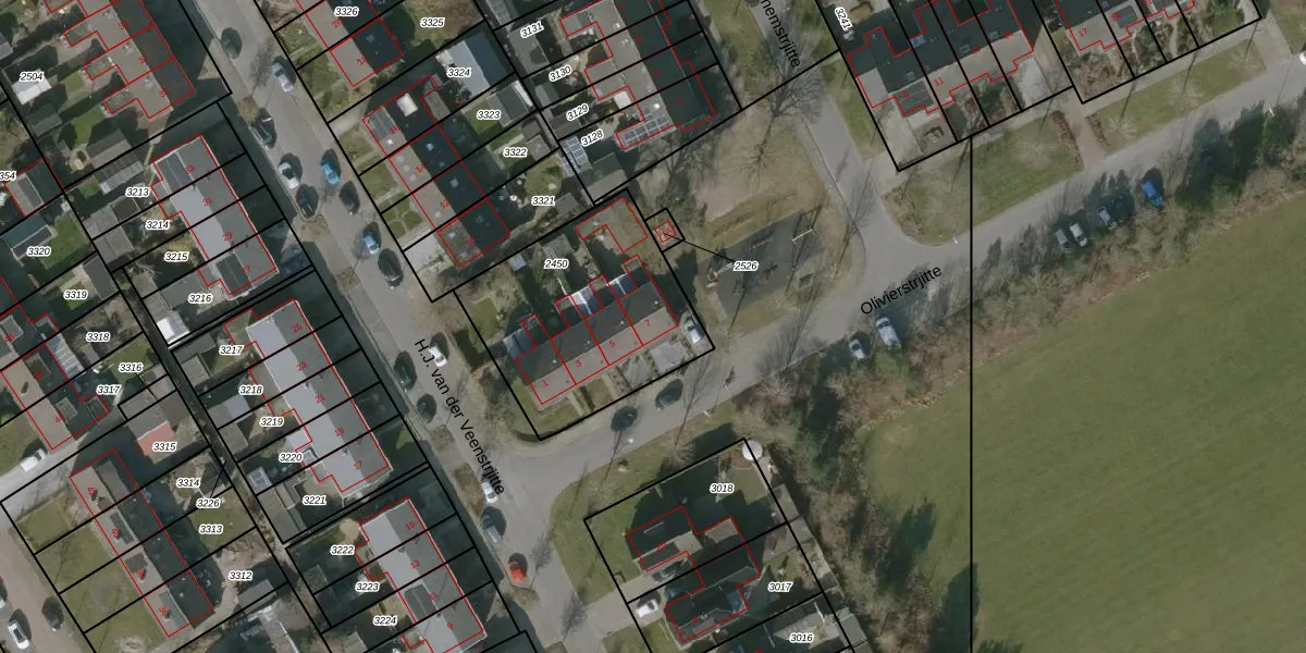 Olivierstrjitte 7 is gelegen op kadastraal perceel SHZ00A2450. Deze kadastrale aanduiding is uniek en wordt gebruikt door het Kadaster om eigendomsrechten en andere zakelijke rechten vast te leggen. Het perceel maakt onderdeel uit van de kadastrale gemeente Surhuizum.